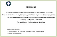 Η Δ/νση Π/θμιας Εκπ/σης Καρδίτσας δια του Γραφείου Σχολικών Δραστηριοτήτων σε συνεργασία με την Ένωση Πολιτιστικών Συλλόγων Καρδίτσας διοργανώνει στα Πλαίσια του 34ου Πανελλήνιου Ερασιτεχνικού Φεστιβάλ Θεάτρου Καρδίτσας επιμορφωτικό σεμινάριο με τίτλο: